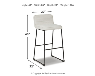 Contemporary modern design. Barstools feature short back with horizontal channeling in the back and seat with tubular metal frame D225-3xx is linen colored.