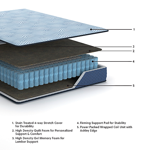 • Power-packed wrapped coil unit with Ashley Edge to minimize motion transfer and increase support