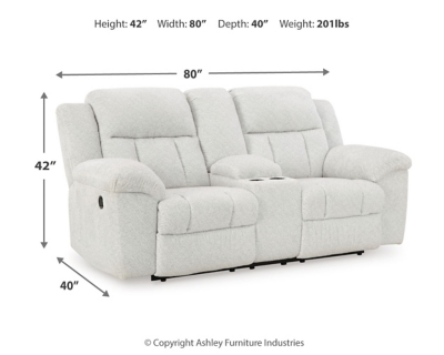 Large scale, value added motion sofa with a plush, ultra soft textured polyester fabric. Plush pillow top arms, pad over chaise, comfort channels in the lumber and chaise. Features storage console loveseat and matching recliner.