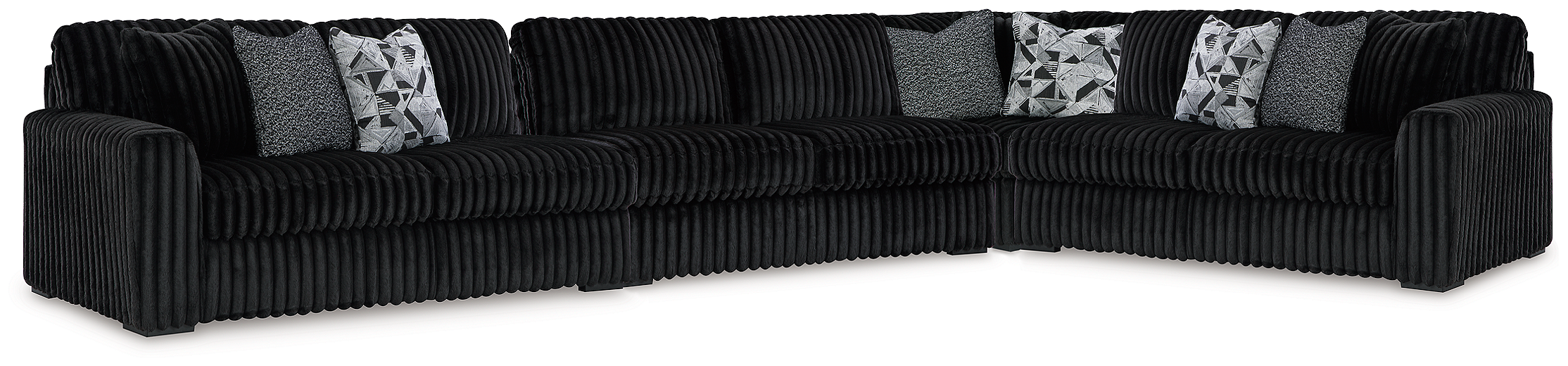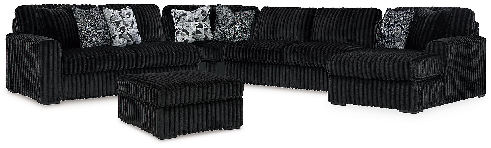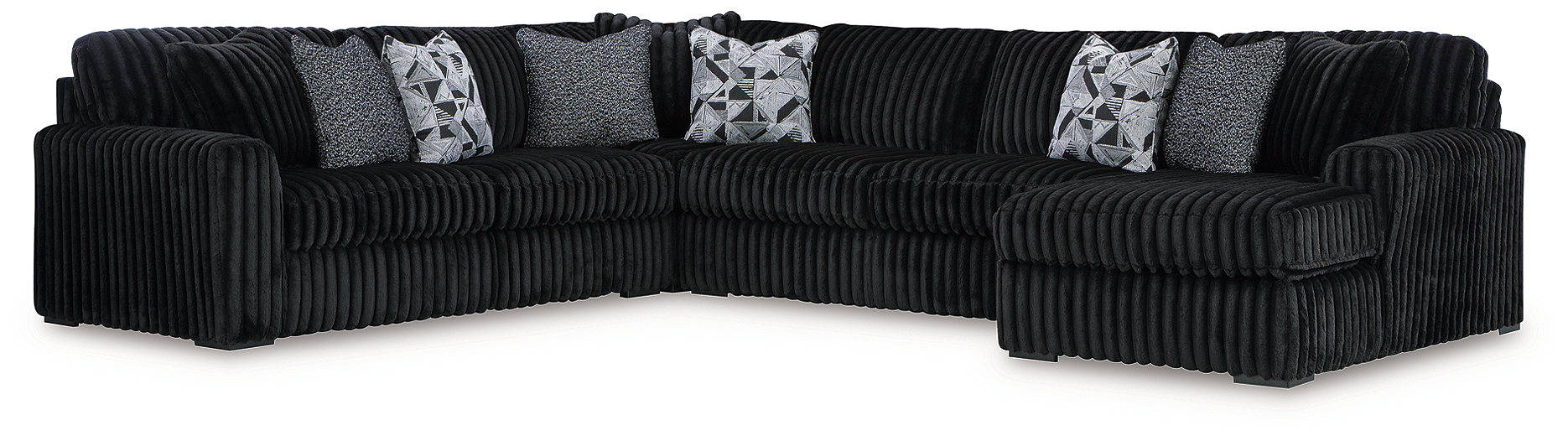 Transitional chaise sectional with a low profile padded wedge arm and upholstered jumbo cord. Textured ultra-soft mixed media look featuring new plush, cozy polyester cord. Plush seating with reversible cushions, attached backs and low-profile accent legs.