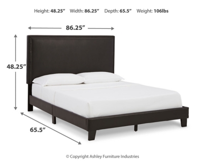 Casual Lifestyle design. Panel headboard with three height adjustments to accommodate various mattress dimensions. Made with engineered wood frames and foam cushioned panels. B091-081 is upholstered in a dark brown faux leather. Low profile slat foundation eliminates the need for a box spring. Bed ships complete in one box.