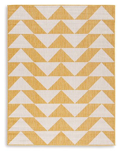 Introduce a touch of contemporary style and visual interest. This area rug's striking geometric print grabs attention while grounding your space. Perfect for indoor and outdoor use, it's a wonderful addition to any patio or stylish living room.